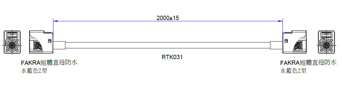 FAKRA 短體直母頭防水 Z型 導通阻抗 3.0 ohm Max 高壓測試 AC:500V,0.5mA 0.01ms 絕緣阻抗 DC:500V, 100MΩ ohm MIN 阻抗:50Ω 防水等級IP67 抗拉强度 110N MIN 環保要求 符合ROHS 2.0標準